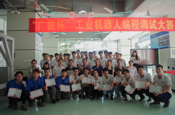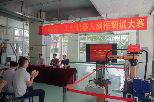 5月22日,借我校第二十一屆科技節(jié)開(kāi)展之際,由廣州數(shù)控設(shè)備有限公司和廣州市白云工商技師學(xué)院機(jī)電工程系共同主辦的第三屆“廣數(shù)杯”工業(yè)機(jī)器人編程與調(diào)試競(jìng)賽在白云—廣數(shù)工業(yè)機(jī)器人實(shí)訓(xùn)中心舉行。
